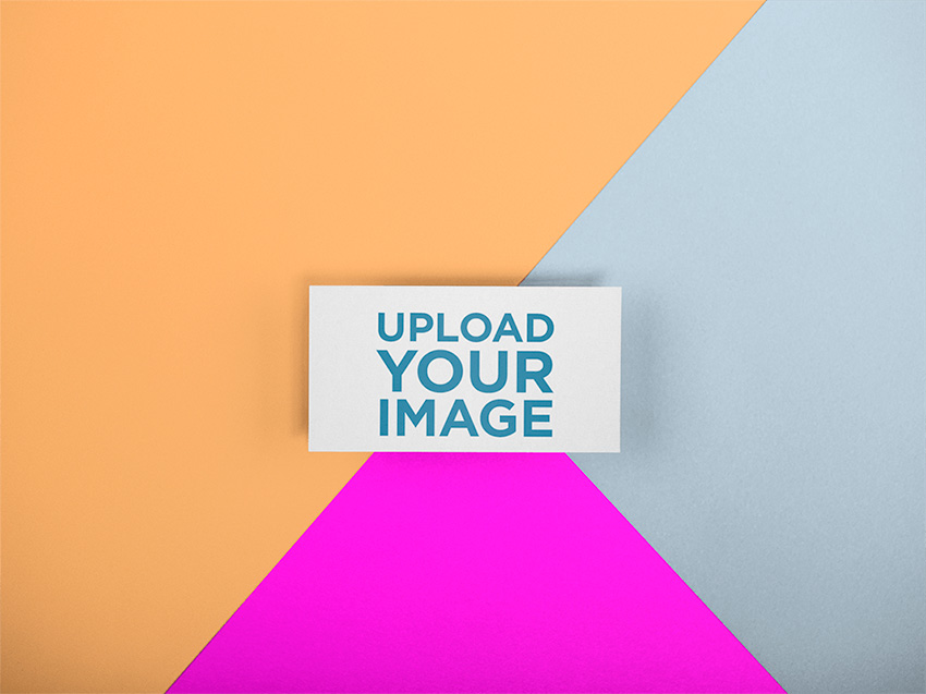A mockup featuring a paper business card on a surface with three colors, use it to showcase your latest designs or logos to your audience.