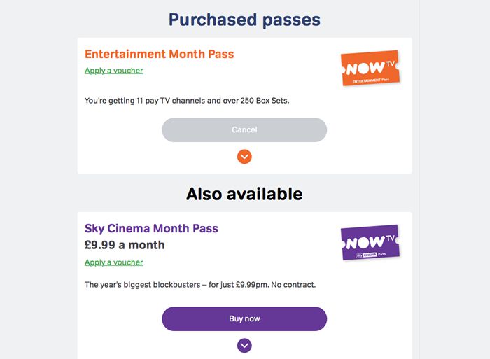 The grey-coloured ‘Cancel’ button looks disabled at first glance (Source: NowTV).